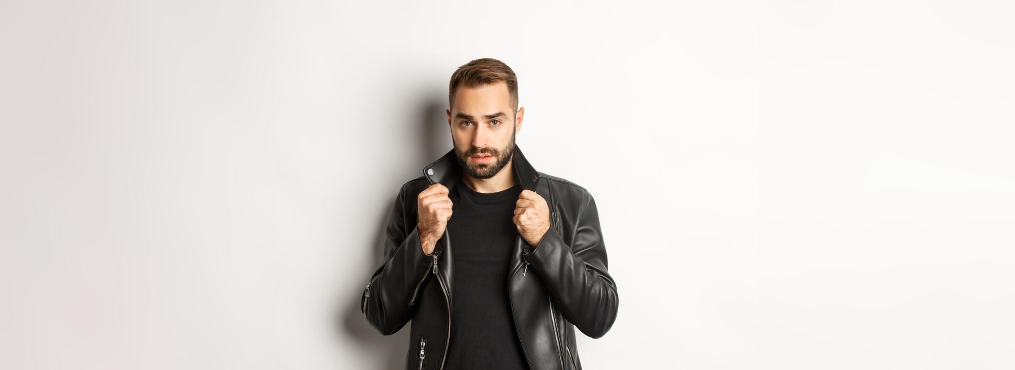 Men's real leather bomber jacket with faux fur