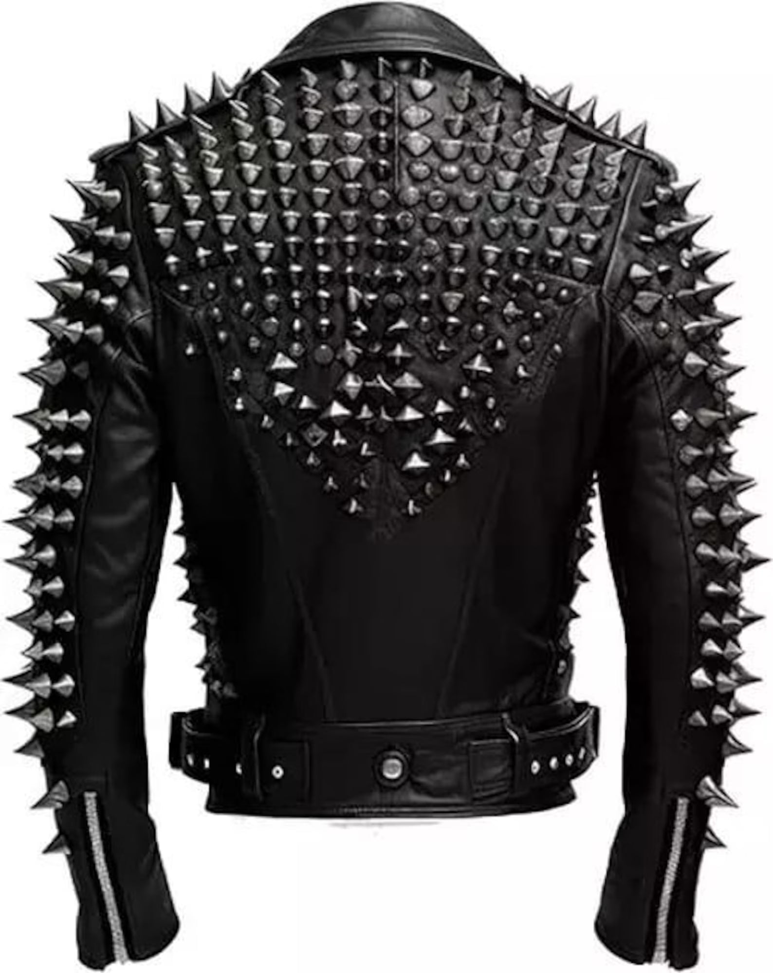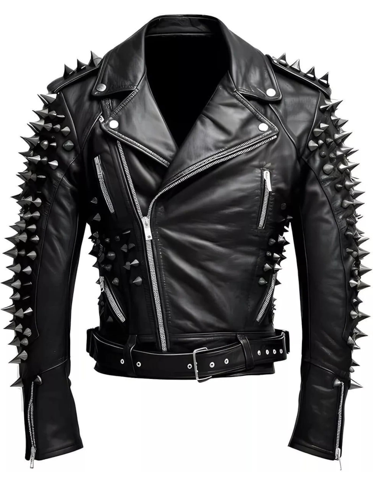 Men’s Studded Leather Biker Jacket – Punk Rock Spike Motorcycle Style