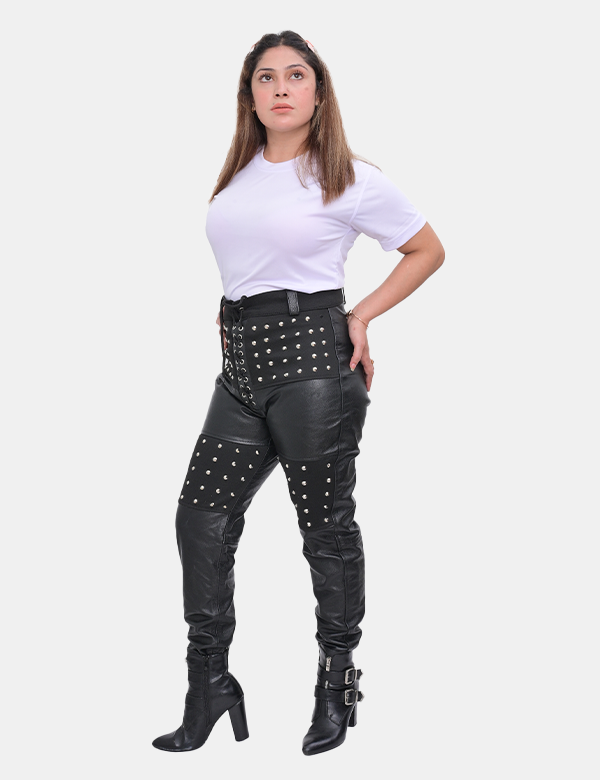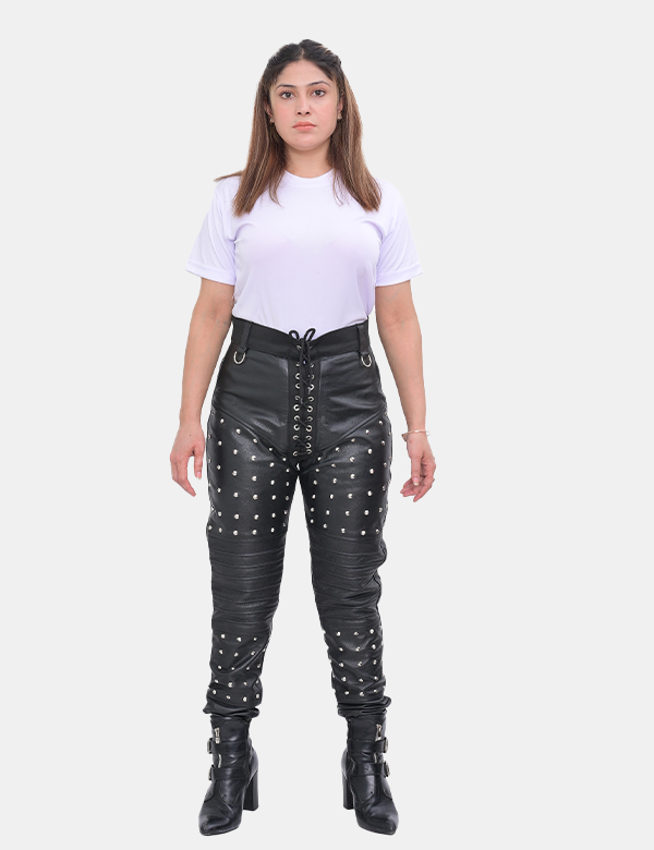 Women's Studded Black Leather Pants