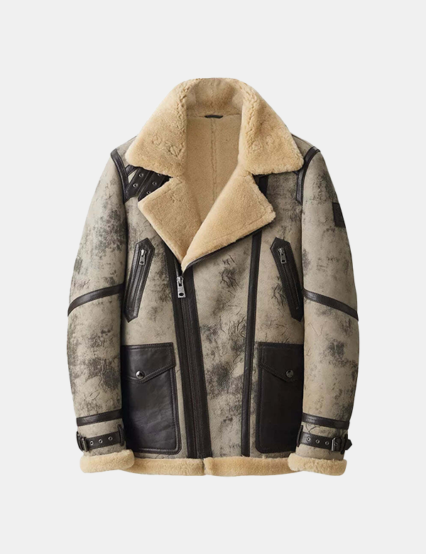 Men's real leather bomber jacket with faux fur