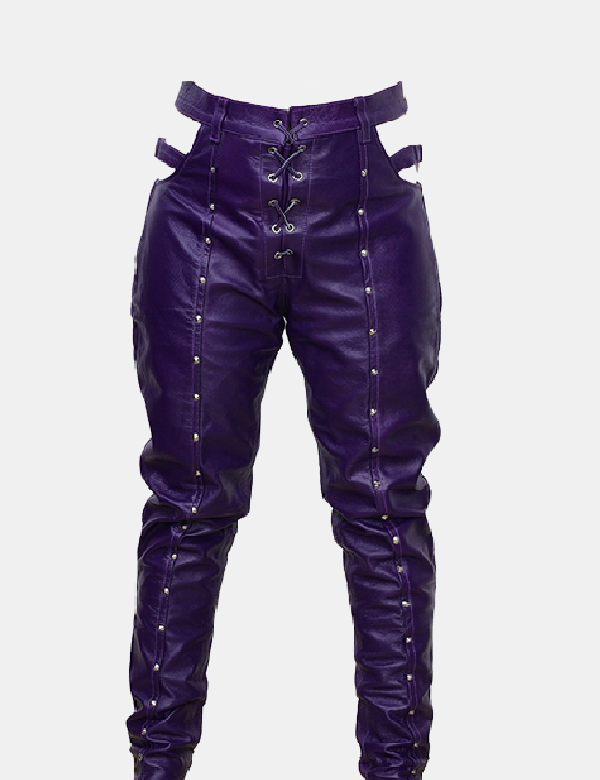 Women's purple studded leather pant