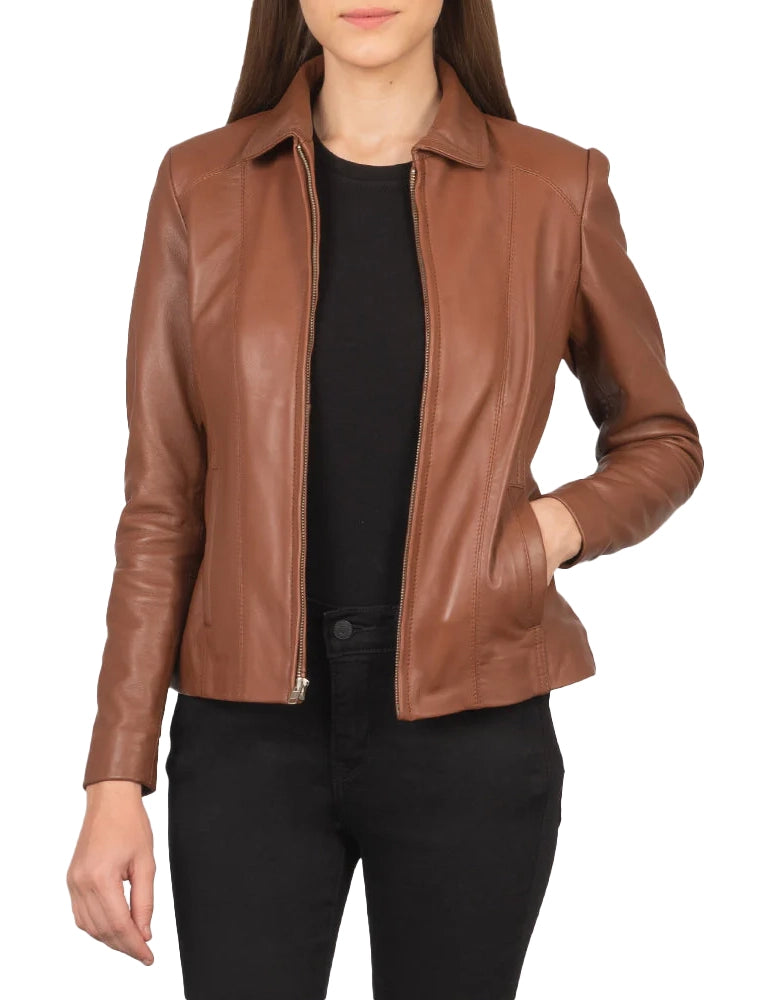 Women’s colette brown lambskin leather jacket – stylish biker & casual wear